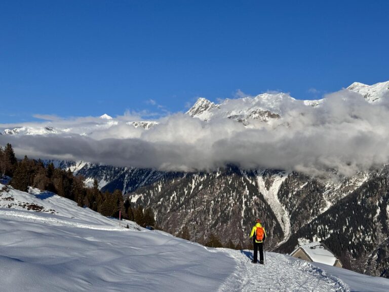 The snowshoeing experience to Capanna Gorda is fascinating at any time, but perhaps even more so when undertaken in the late hours of the day. At that time, it is possible to witness extraordinary sunsets, with intense light reflecting off the snow-covered peaks, including the Adula massif.
