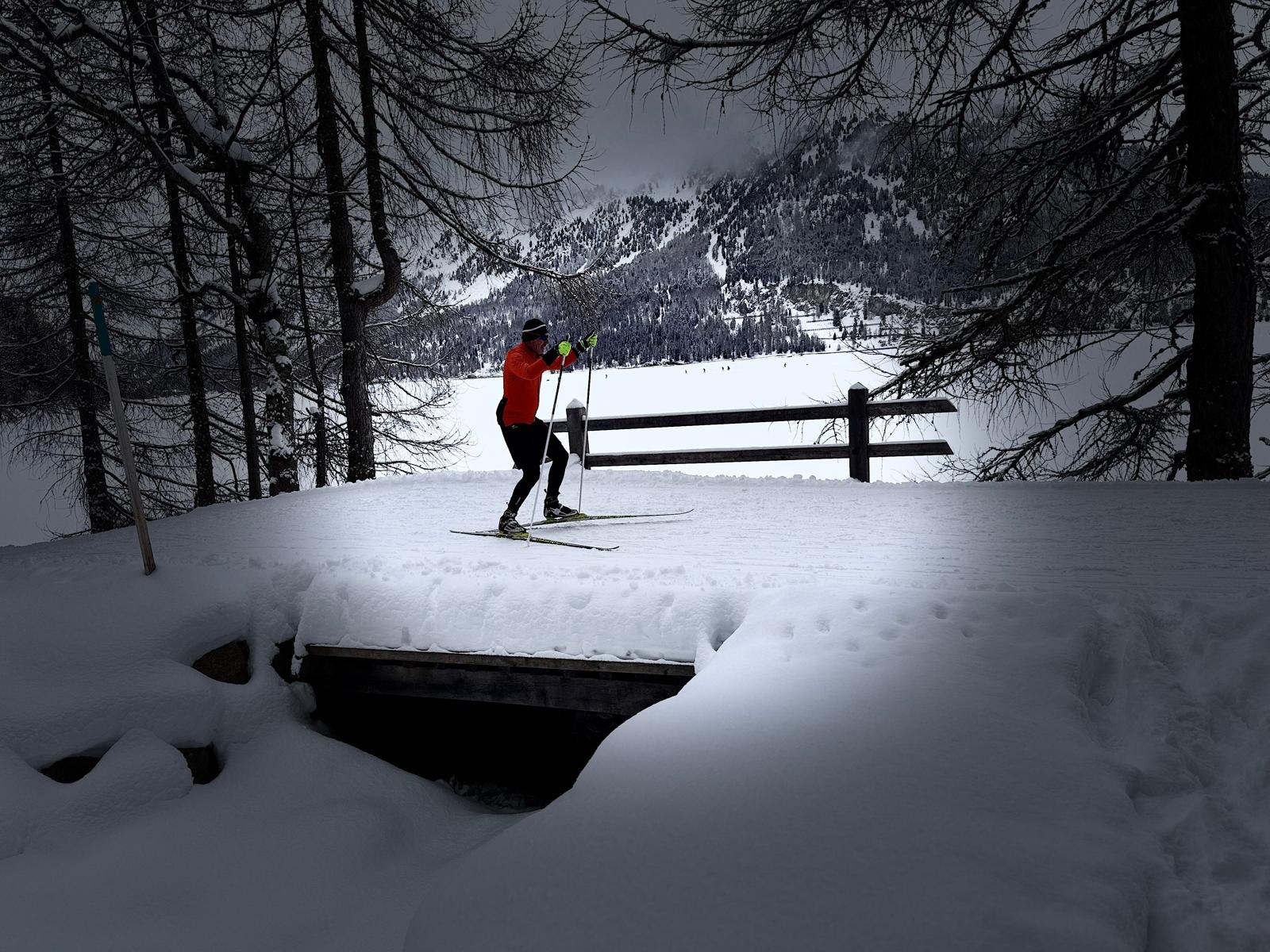 Percorrere il tracciato per ciaspole del Morteratsch è un’esperienza che si vive prima nel silenzio e poi nel cuore. Appena i passi iniziano ad affondare nella neve soffice, il ritmo del mondo quotidiano sembra dissolversi, sostituito da un tempo più lento, quasi antico, scandito soltanto dal respiro e dal lieve scricchiolio sotto i piedi…