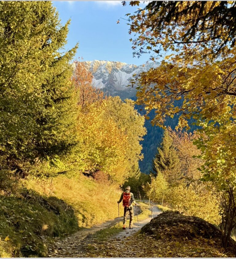 Da qui, seguendo le indicazioni per il Föisc, il bosco si dirada e si apre a praterie luminose. Il cammino misura poco più di cinque chilometri e mezzo, con un dislivello di circa ottocento metri: una salita accessibile e gratificante, perfetta per chi ama camminare con calma, lasciandosi sorprendere a ogni curva dal gioco di luci e ombre autunnali.